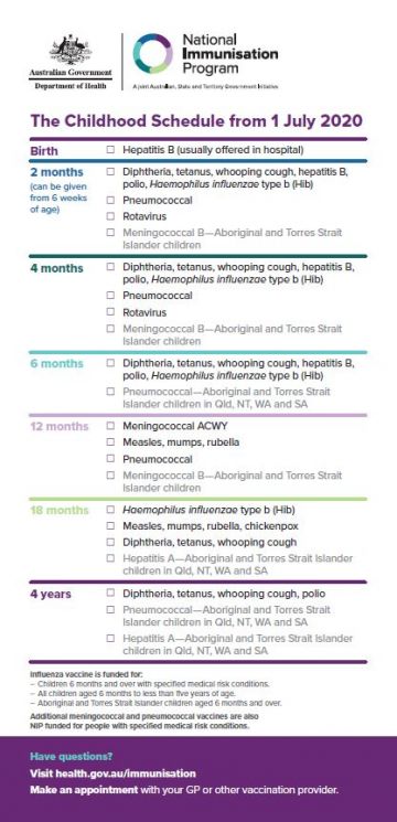 Keeping children healthy is supported by the Victorian Immunisation Program as it protects children against vaccine preventable diseases and reduces transmission. Vaccination has been proven to be safe and effective at preventing illness. Routine vaccines are available at no-cost for eligible children through the National Immunisation Program (Victorian Department of Health, 2021.).