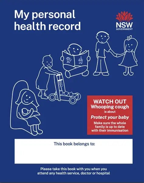 The Personal Health Record Book tracks a child's health from birth through early childhood, including immunizations, growth checks, screenings, developmental milestones, medical history, and important appointments. These records help families and health professionals monitor development and wellbeing over time (Department of Health Victoria, 2021.)